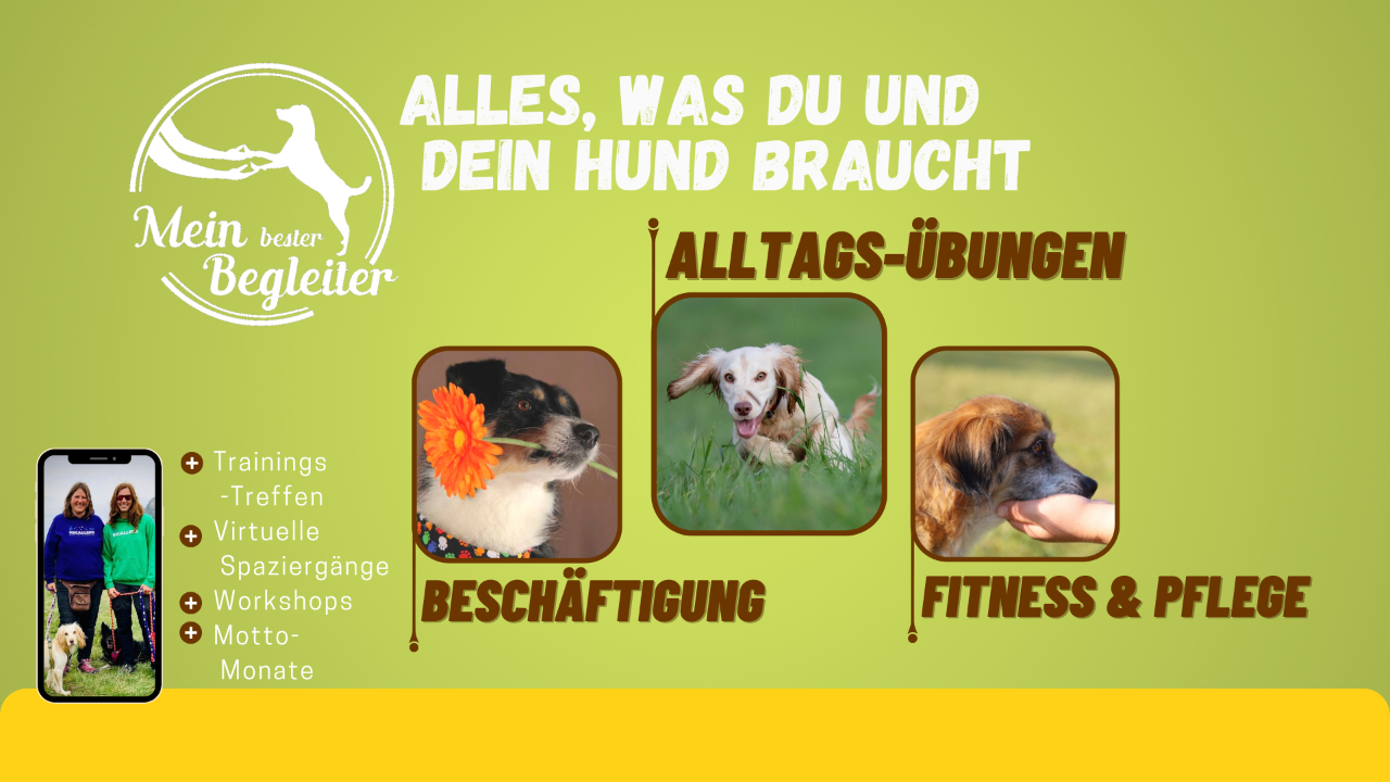 Ich bin Fan von Meinem besten Begleiter, ich habe gelernt, dass es die kleine Schritte sind, die uns vorwärts bringen, eure detaillierten Erklärungen, euer Verständnis und eure Erfahrung sind ein Geschenk, ihr habt ein Ohr und einen Lösungsansatz für jede Schwierigkeit, an der wir bei den Übungen gestoßen sind. Sympathisch, kompetent und liebevoll! K.C. und ich bleiben dran. Danke! 😍